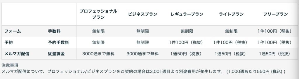 | プロフェッショナルプラン | ¥6,910/月(税込) | 20ページ公開、広告非表示、メルマガ、予約、予約プラス |
